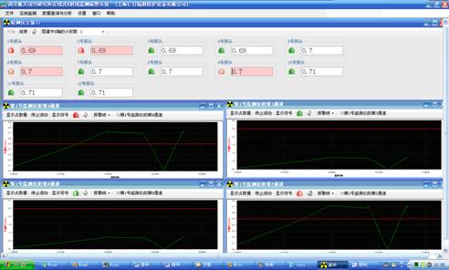 本系統(tǒng)以工業(yè)控制計(jì)算機(jī)作為上位機(jī),通過(guò)由 5 芯屏蔽電纜線連接的 RS-485 通訊網(wǎng)絡(luò),來(lái)實(shí)時(shí)采集安裝在現(xiàn)場(chǎng)的若干臺(tái) REN300 在線 x- γ輻射安全報(bào)警儀和多個(gè)不同量程的 X、γ射線探頭 . 通過(guò)對(duì)采集數(shù)據(jù)的加工處理,系統(tǒng)以文本數(shù)字、動(dòng)態(tài)圖形曲線、動(dòng)態(tài)圖形符號(hào)、動(dòng)態(tài)顏色、報(bào)警聲音的方式向管理人員和現(xiàn)場(chǎng)工作人員呈現(xiàn)輻射現(xiàn)場(chǎng)的劑量率信息。同時(shí)在保證系統(tǒng)穩(wěn)定運(yùn)行的前提下,系統(tǒng)能連續(xù)保存 30 個(gè)輻射探頭 5 年以上的歷史數(shù)據(jù),為輻射環(huán)境評(píng)價(jià)提供重要的數(shù)據(jù)依據(jù) . 此外系統(tǒng)還提供對(duì)歷史的報(bào)警數(shù)分析報(bào)表、平均劑量率分析報(bào)表等統(tǒng)計(jì)分析功能。本系統(tǒng)是一套成熟的、完善的、實(shí)用的系統(tǒng),已在多個(gè)地方安裝并運(yùn)行。