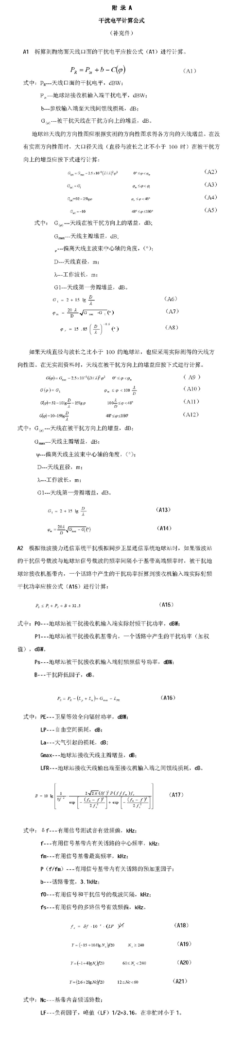 B1.3.3 天線口面處干擾信號電平PR的折算應(yīng)按公式(B1)進(jìn)行計(jì)算。